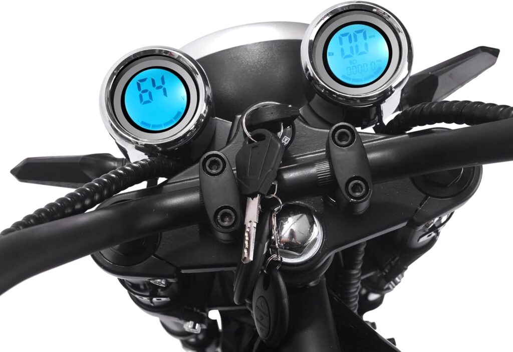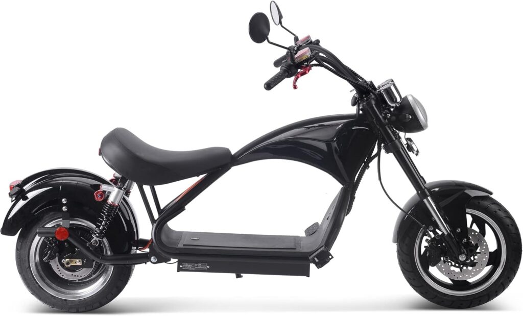 This powerful hub motor, powered by a 60 volt 20ah Lithium Battery can reach speeds of 28 mph and travel 25+ miles per charge. Equipped with a Front & Rear LED lights, Speedometer, Front & Rear Blinkers and Horn. Front & Rear Hydraulic Brakes and Huge Tires, this scooter is ready to tackle any destination. Specs: Motor: 2500W Rear Hub Motor (brushless) Battery: 60v 20ah Lithium Ion Battery Handlebars: Tilt Adjustable Throttle: Variable Twist Key: Yes Top Speed: 28 mph Max Rider Weight: 300 lbs Recommended Age: 16+ Years Old Street Legal with DMV: No Seat Height: 25 inches Frame: High-tensile steel Range Per Charge: 25 to 38 miles (weight dependent) Charge Time: 4-8 hrs Front/Rear Tire Size: 215/40-12 130/60-13 Shocks: Front and Rear LED Headlight: Yes Maximum Climbing Angle: 18 degrees Maximum Torque: 95 N/M Brake: Hydraulic Front and Rear Wheelbase: 61 inches Seat Height: inches Box Size: 76x17x34 inches Box Weight: lbs Scooter Size: 82x34x40 inches Scooter Weight: 154 lbs