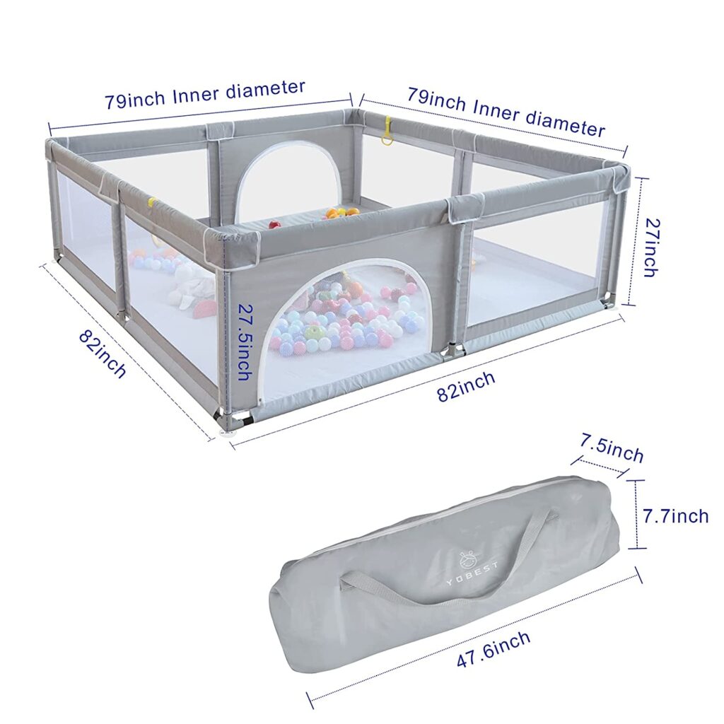 • ENJOY LARGE PLAYING AREA: Playpen for babies size is 82x82x27inch/208x208x70cm, the internal size is 79x79x27inch/200x200x70cm and weighs is 19lb. Large size and large capacity, make your parent-child time more beautiful! Note: The product does not contain ocean balls.