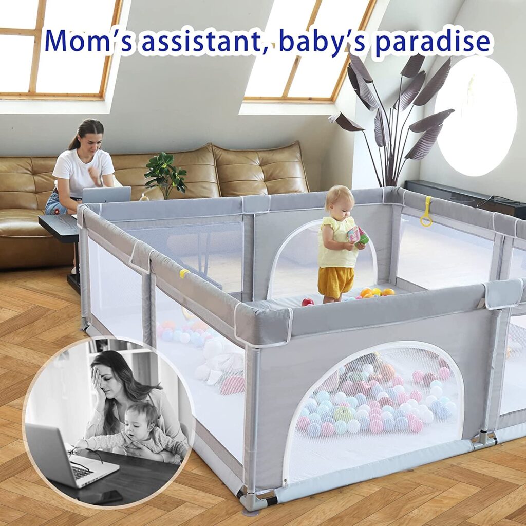 • MOM’S GOOD HELPER: The playpen effectively help your kids explore the world of perception, keep your baby away from harm, A great safe space for babies to stretch and learn to move in their own and mothers can free their hands to do their own things.