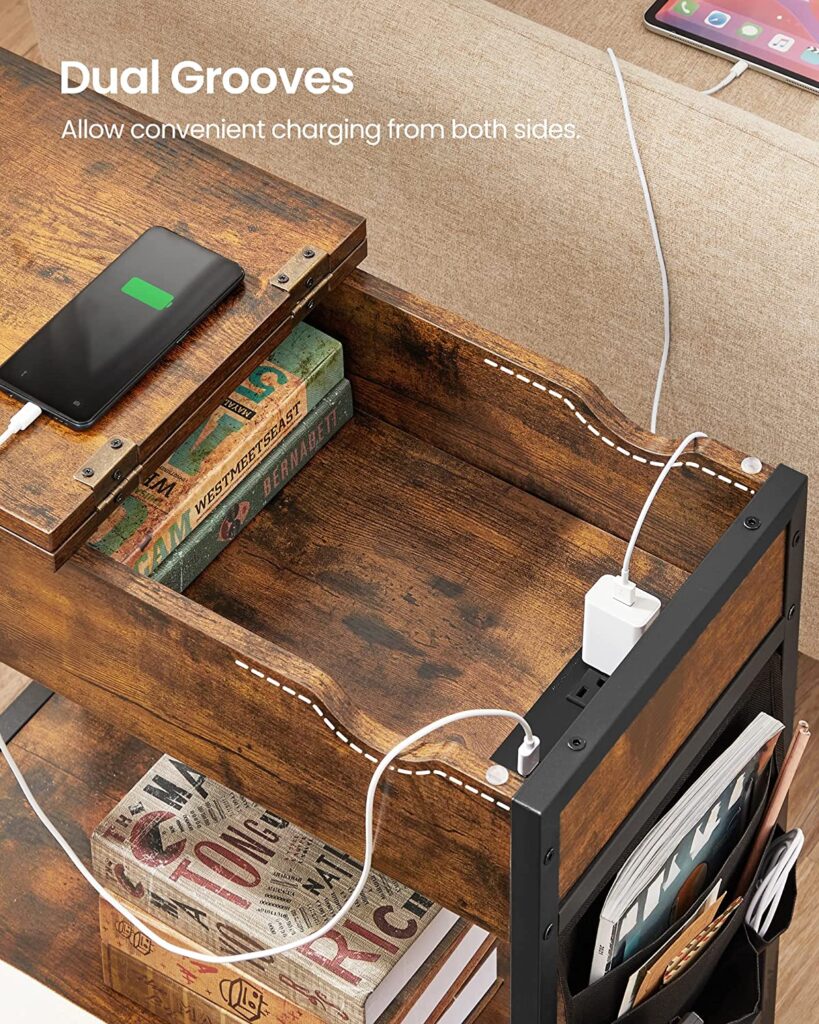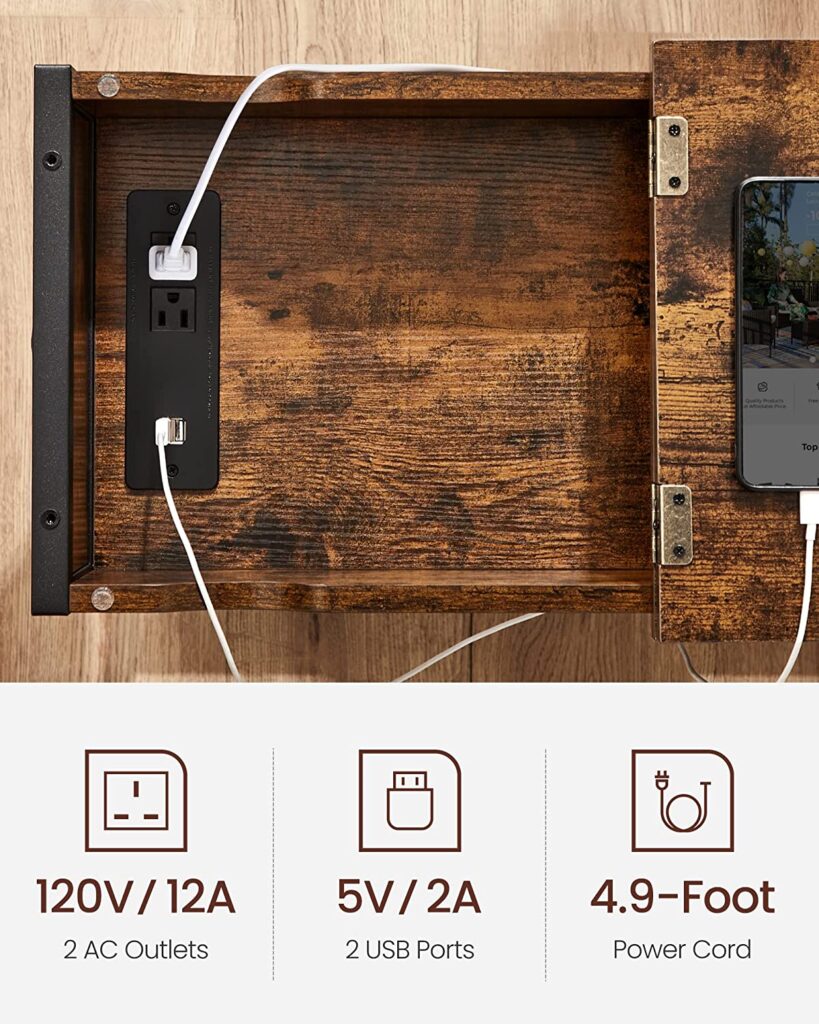 - 4 Ports for Multi-Charging: This side table with 2 AC outlets, 2 USB ports, and the 4.9 ft extension cord helps you charge your phone, tablet, lamp, and game console at the same time. Also, the distance between each outlet and port prevents adapters from blocking each other