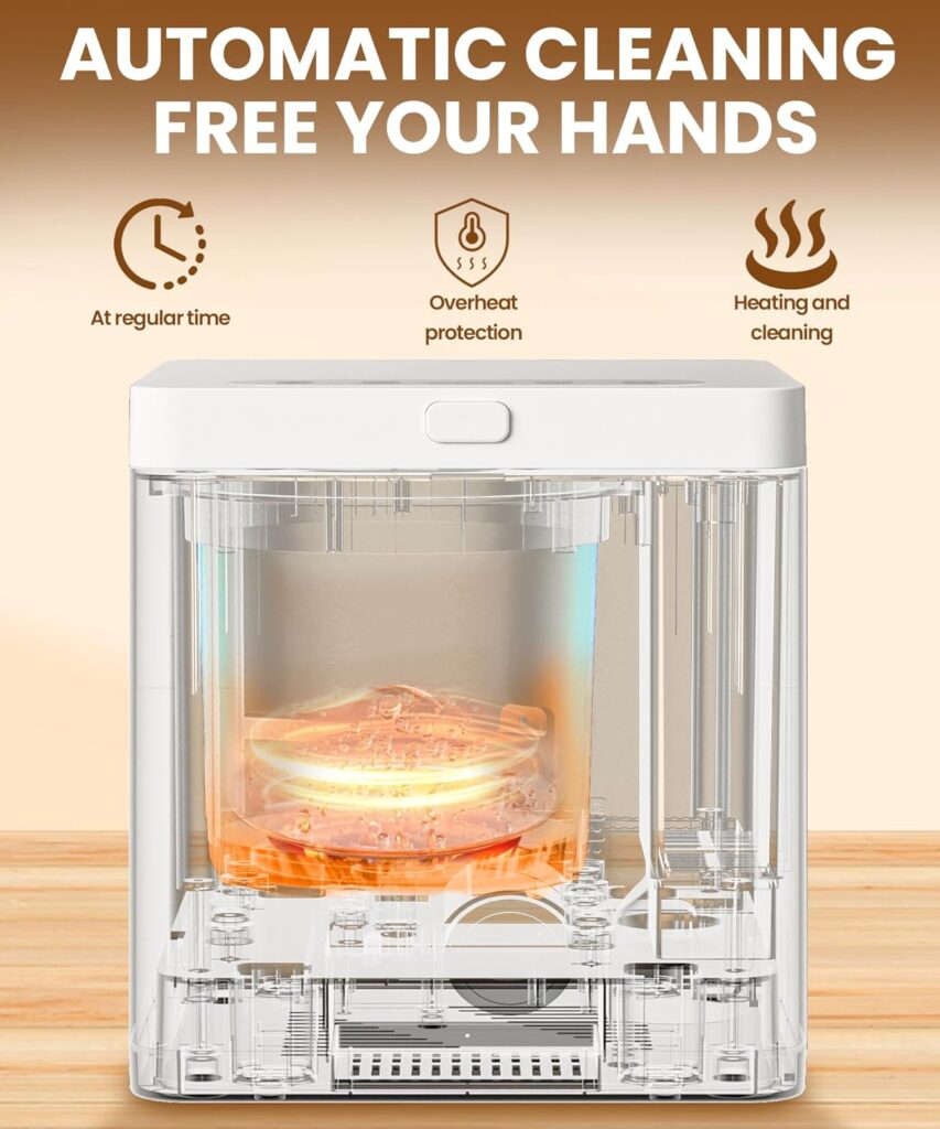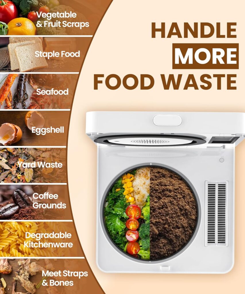 • Auto-clean: The composter is equipped with an auto-clean function, a button to clean after use, reducing cleaning and saving your time. Simply add water and turn on the auto-clean function to clean the residue left behind by the food waste machine.
